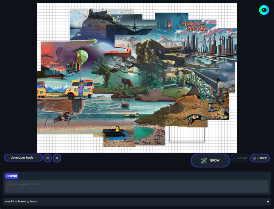 Infinitecanvas is an experimental platform that allows users to collaboratively create and expand an image using textual descriptions. Inspired by my research thesis, [Expressive Data: fostering connections with online crowdsourcing through creative applications](https://drive.google.com/file/d/1-tvD-8RChDHTewMMCY0I_9q-U_4IUYKu/view?…), this project's initial ideation explores the use of crowdsourcing in fostering connections and collaboration among participants in creative contexts.