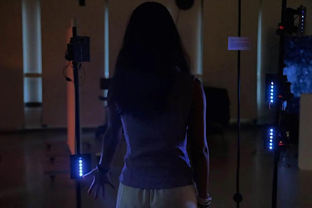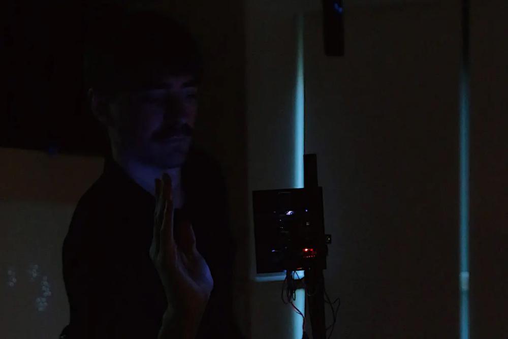 The project consists of an ecology of responsive agents that attempt to collectively identify and perceive the emerging behavior of the visitors. It focuses on kinetic interactions, examining forms of non-verbal dialogue between human and architectural agency. Considered as an extension of the function of architecture, this complex of agents suggests new hybrids that span across different dimensions and forms. Each of the agents shares a similar appearance consisting of a rotating surface embedded with sensor and lights to inform the interaction with the visitors, and also a main body of actuators which drives its motion. In a darkened environment, the agents are attached to several self-standing supporting structures, and are distributed with different positions and orientations to form a spatial configuration.