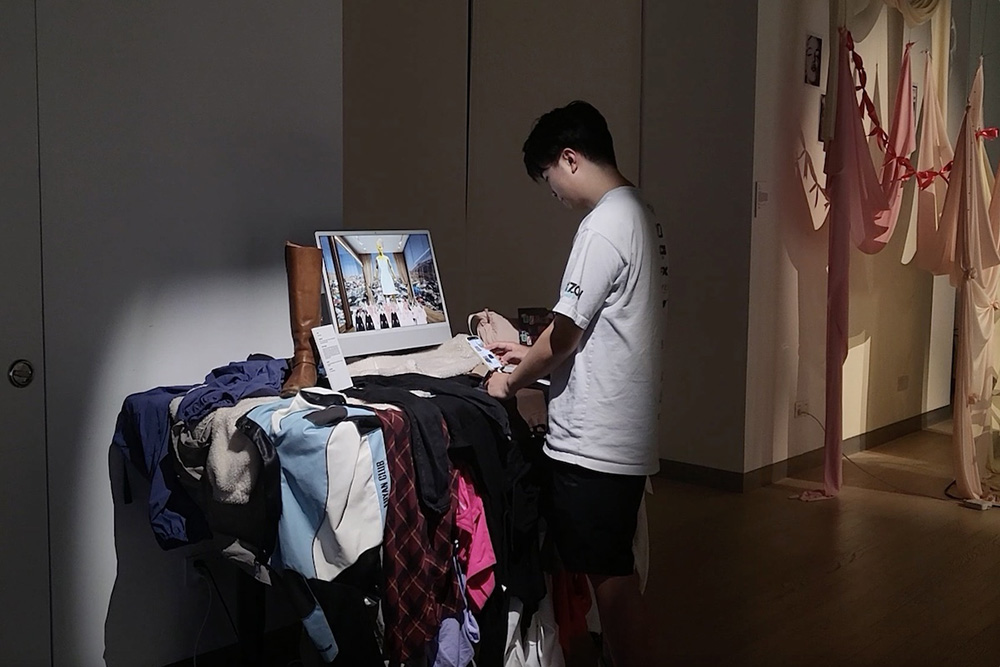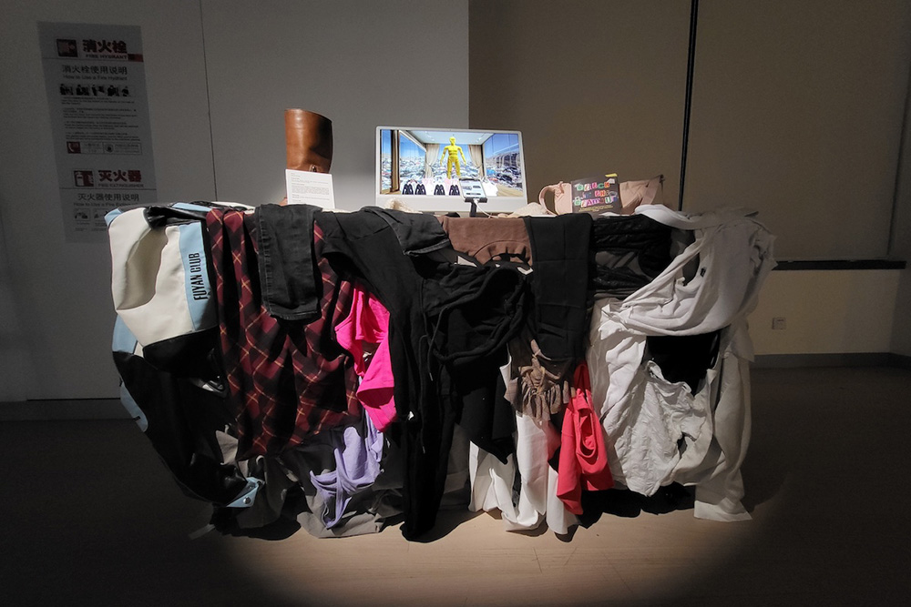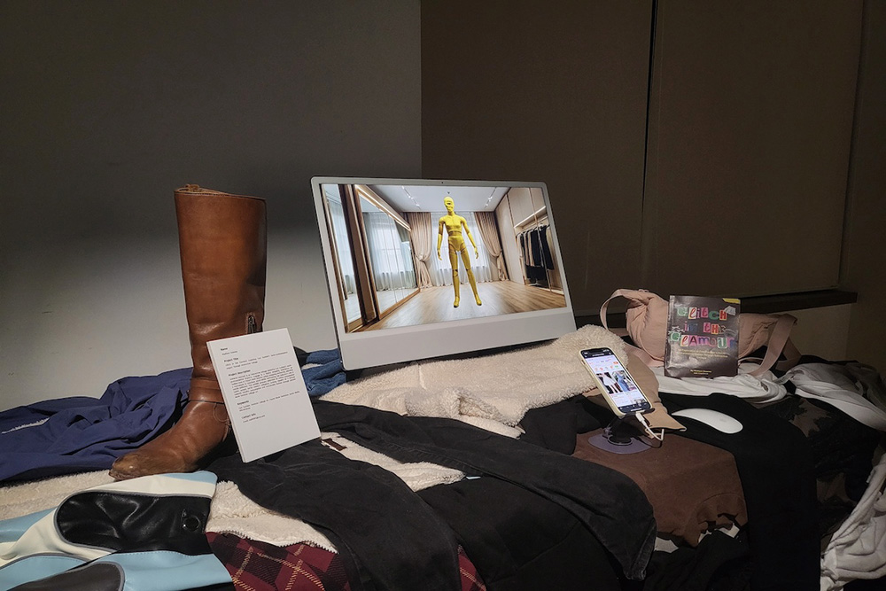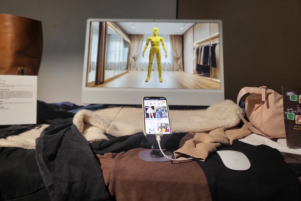 “Glitch in the Glamour” invites users to engage in a digital shopping experience on TaoBao, adorning a mannequin in luxurious attire while confronting the fast fashion industry's role in textile pollution. This exhibit prompts reflection on online consumption habits amidst social media's influence, inviting viewers on a journey towards mindful consumption and sustainable fashion through second-wave feminist, interactive collage art.