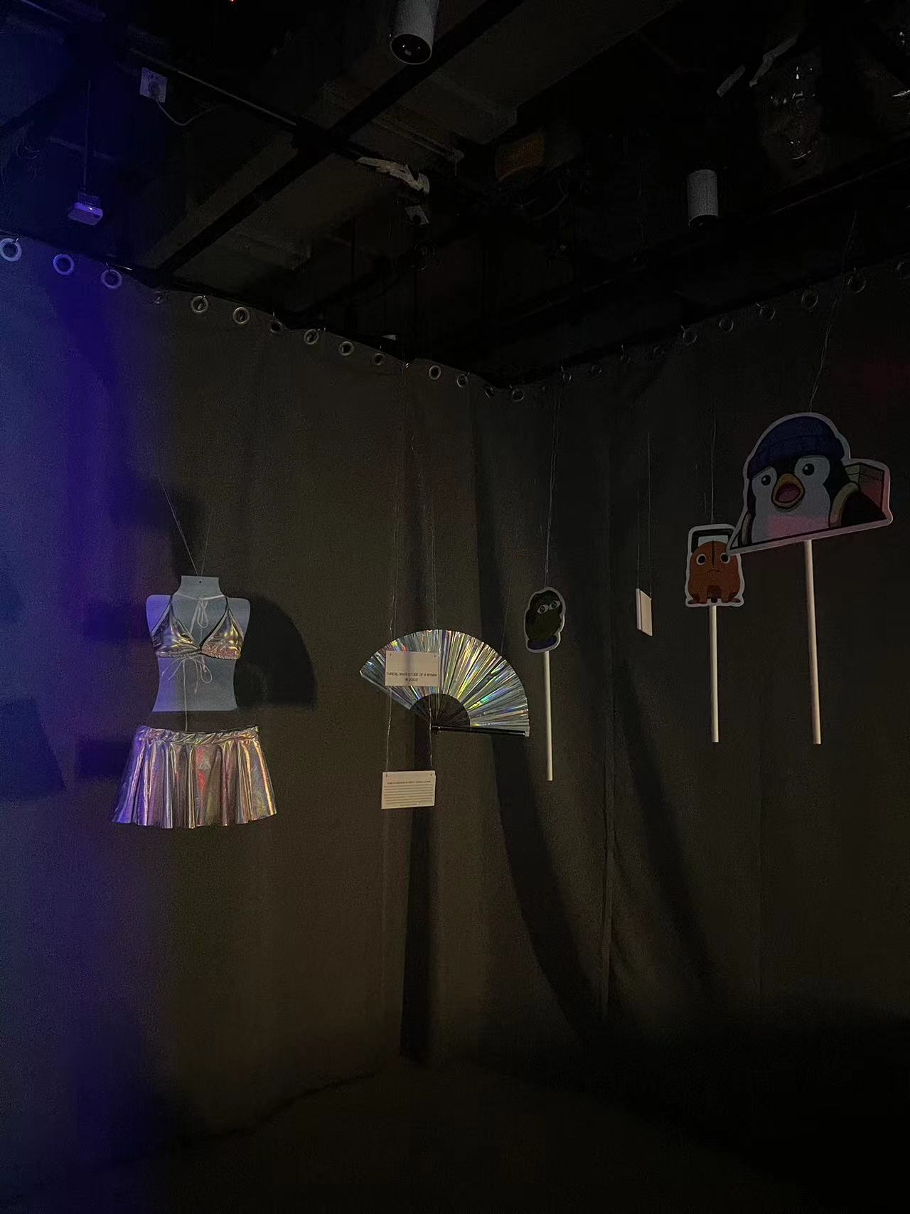 The immersive installation, Neon Bridges: Synthesizing Rave Culture in China and The United States, delves into the vibrant and captivating world of rave culture, highlighting the energy of both the Chinese and American rave scenes. The centerpiece of the installation is a dynamic video montage that captures the enthusiasm and passion of the American and Chinese rave audiences, capturing the unity of both scenes under the sounds and rhythms of dance music. The audio mix is carefully curated to emphasize the unique aspects of both Chinese and American artists, attempting to create a seamless blend of different genres such as techno, dubstep, trap, house, and more. Artists were selected to represent different aspects of the scene from mainstream to the underground. To enhance the visual and atmospheric experience, the installation features an array of laser and fog effects, replicating the immersive audiovisual experience of attending a rave event. Artifacts integral to the rave scene, such as kandi bracelets, towering totems, and distinctive fashion pieces, are displayed to highlight the creativity and personal expression that defines the participants of rave culture. Kandi bracelets, often handmade, are exchanged as tokens of friendship and a representation of rave’s PLUR culture. Totems, decorated with intricate designs and personal messages serve as placards that demonstrate the identity of a group of friends. The distinctive fashion pieces on display reflect the bold and bright styles raves typical wear. Neon Bridges invites visitors to explore the convergence of two countries' vibrant subculture and celebrate the shared love of electronic music that transcends cultural boundaries. This installation not only highlights their differences between Chinese and American rave cultures, but also their similarities, sharing the love and unity within the rave scene.