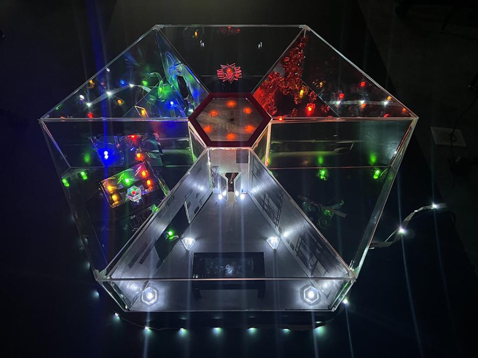 The Protagonist Experience strives to make each guest feel like they are the main character in their own story by having the unexpected twist of being separated from the group. After being separated they are unable to rely on the safety and shared ‘fun fear’ of the group and must venture into their own adventure as the sole experiencer. Omniversal Escapade is a theory of how the Protagonist Experience can be translated to the narrative within a theme park attraction. Taking into consideration limitations of an attraction (ex. guests flow, accessibility, young guests) the integration of physical and digital elements (spatialization of tangible sets and screen displays), and attraction stages (ex. queue, pre-show, loading zone, ride, and exit), my project is portrayed through an audio narrative and physical model of the attraction’s design. While Omniversal Escapade is meant to be in large scale format of a theme park attraction, its current format of the audio narrative and model has been created to focus on the narrative and design elements highlighted in the Protagonist Experience theory. This original world-building story is centered around the destruction of the omniverse. A group of experts on the various dimensions, as in the guests riding the attraction, are called to traverse the omniverse and stop the Nylus Dimension from invading the other dimensions. During their journey they are unexpectedly split up and must take on the main character mantle in each of their stories until they reunite and are able to share their individual adventures with each other. The audio narration is recorded by voice actors and edited using Audacity Software. The physical model is a mix of static interior design, LEDs to guide the audience, and controls for which the audience makes their seat and final decision choices.