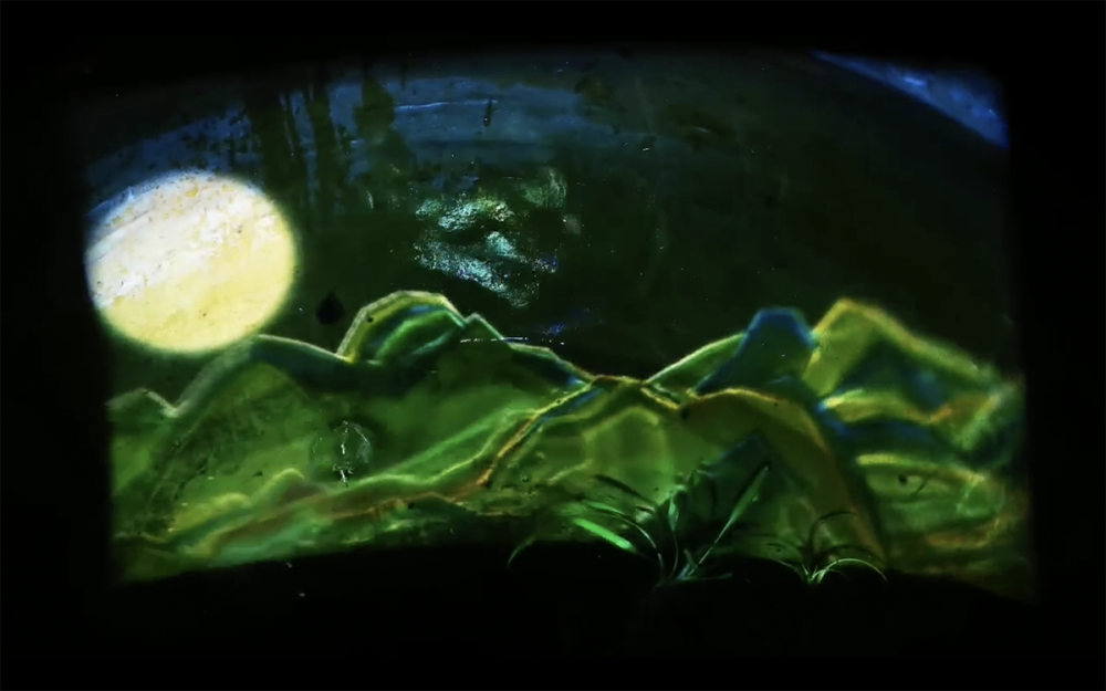 In the first scene, the visuals change from real landscapes to ink and brushes. The final ink and brush scene is generated by a touch designer based on the real landscape video input. I liquified the real landscape to restore the Chinese ink and brush painting effect because pre-modern Shanshui painting is the source for all the appropriations of visual motifs and aesthetics. I want to show the changing process of Chinese landscape paintings are developed from real nature, the mountains and waters. In terms of the settings, I project the visuals onto the window, with the silhouette of real plants, the juxtaposition gives the sense of entering a trance and poses a set of contrasts — tradition and technology, digital and natural, lights and shadows.