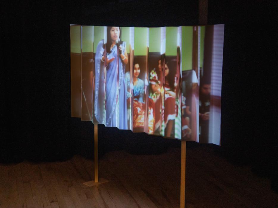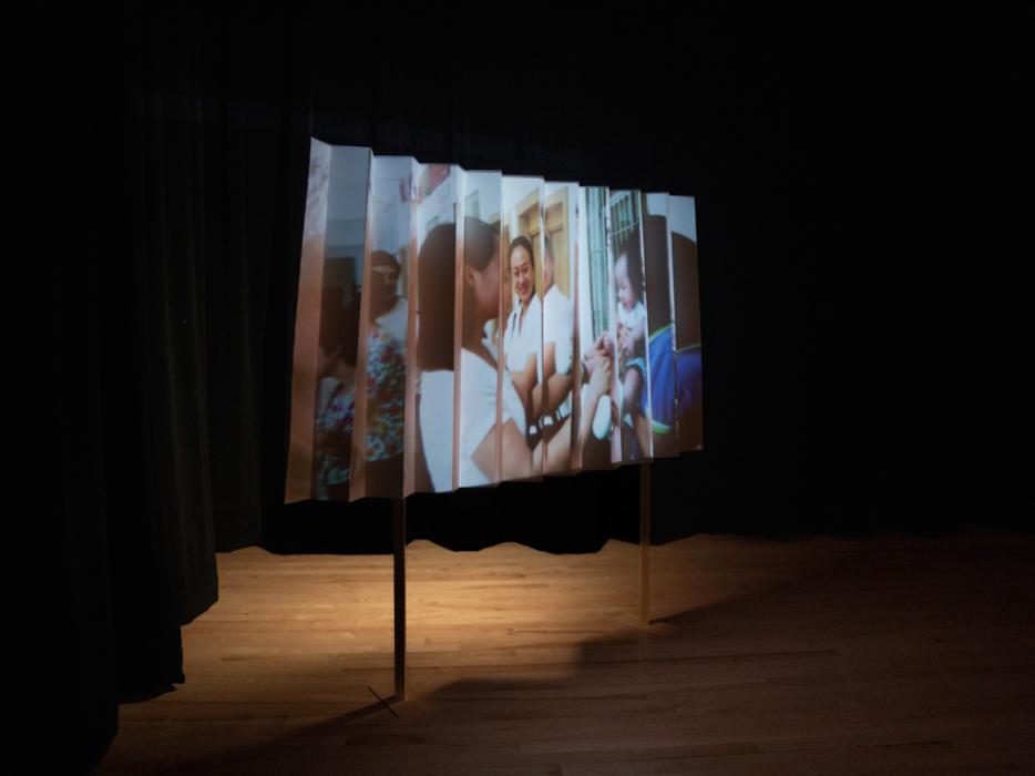 The project focusses on interviews conducted with five American Chinese Adoptees as they present photos throughout life chapters that resonate with their understanding of their adoption and “Chineseness”. The final form of the installation utilizes projection mapping on a zigzagged screen to simultaneously show two stories at once. Creating a chaotic and overlapping auditory and visual experience of the adoptees’ voices and photographs, viewers walk across the left and right to experience the adoptees’ stories. To contrast the non-linearity of memory and the linear presentation of history, the images are presented in both linear, reversed, and non-linear sequences. While one side may depict a photo of the confusion and innocence of childhood, the opposite image may depict the importance of community, language, or self-expression as an adult.