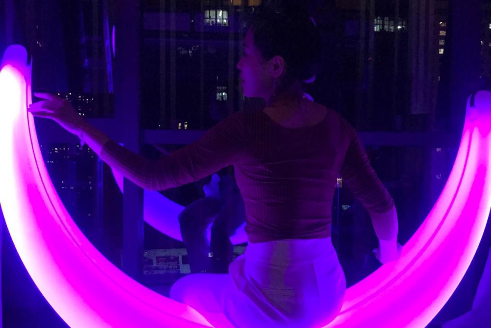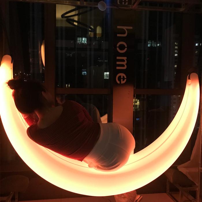 My project is an interactive social art installation, a swing, that using a PIR sensor, lightbulbs, and projection that allows people in modern society to enjoy quiet moments and truly relax and think.