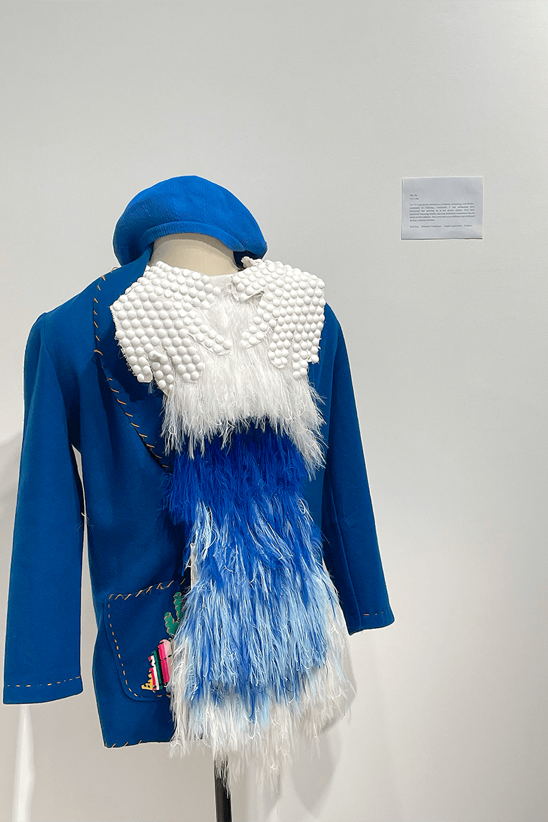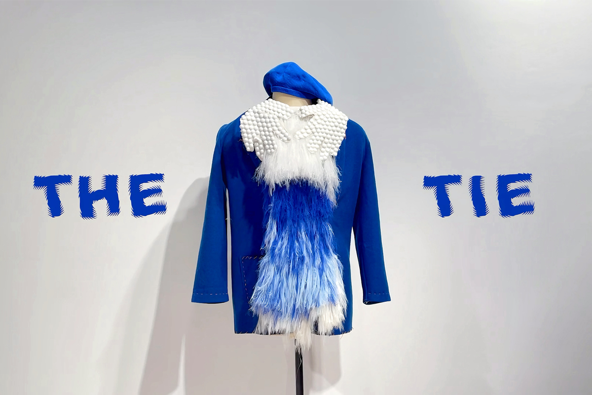 The Tie is a project that investigates the intersection of fashion, technology, and identity-expression in "kidulting". Interactive experiences that let adults act like children are booming. Young people in the post-COVID-19 stage who must deal with the complexities of adult life, are trying to embrace "kidulting". Kidult is a compound word, combined with kid and adult. It used to be a sarcastic name for young people who didn't want to grow up. But now, it has become synonymous with creativity, childlike innocence, and empathy. The powerful appeal of kidulting media content to young people has become a profound and intriguing subject in the fields of media, psychology, and sociology. How does personal expression merge adulthood and the whimsy of childhood by digital technology? This project tries to tie adulthood and childhood through the daily accessory, finding a balance between them. The project is presented as a playable wearable tie, responsive to the wearer's mind and movements in a joyful way. It focuses on kinetic interaction and sound effect, awakening the wearer's inner child through a series of childish sounds and movements. The exaggerated size and furry touch aim to evoke the feeling of being a child and wearing adults' clothes. Beyond a mere accessory, this creation serves as a canvas for individual narratives, a playful companion fostering kidults' self-expression and social connections. It encourages young people to embrace their inner child, tieing adulthood and childhood through a tiny point.