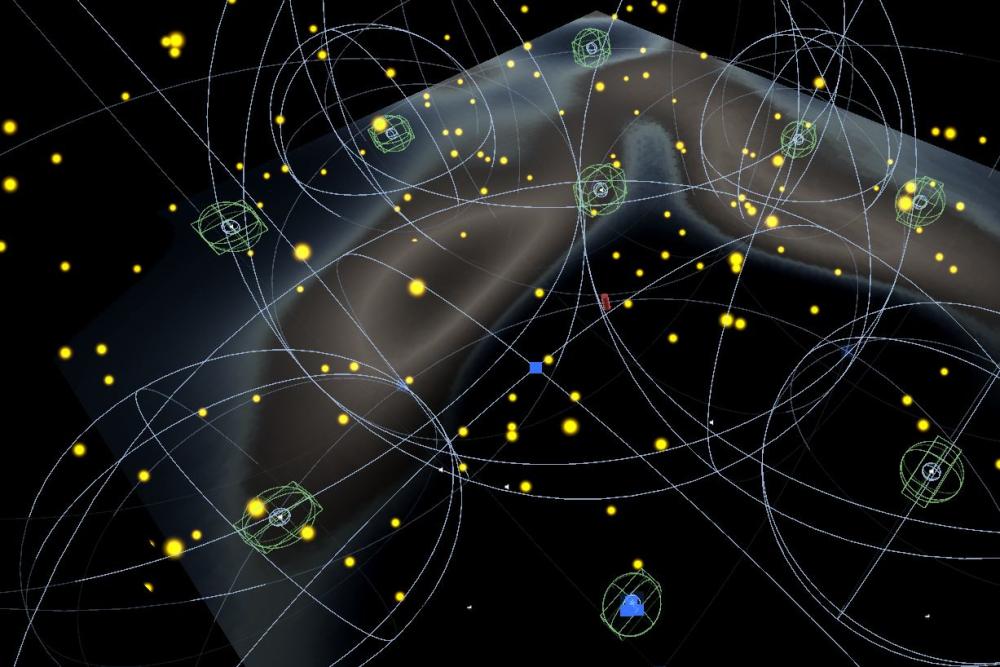 The Unity environment, in the form of a navigable first-person experience, is initially populated with bird vocalizations in communication with each other before slowly being superseded by anthrophonic noise such as busy city streets or airplanes. The user is free to explore the sound space and is also accompanied by minimal visuals of bobbing golden orbs, representative of the initially balanced and pristine acoustic environment. As the anthrophony arrives, a mist is introduced to the space, disrupting the user’s navigability and the overall clarity of the orbs in parallel to the effect disrupted acoustic space has for the orientation of species in their environment.