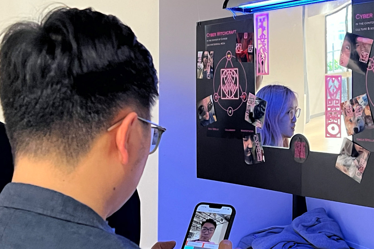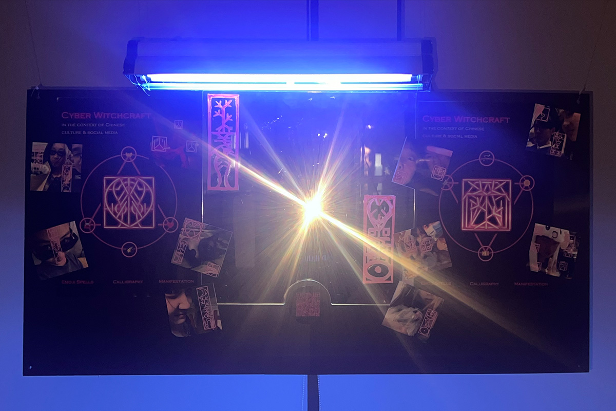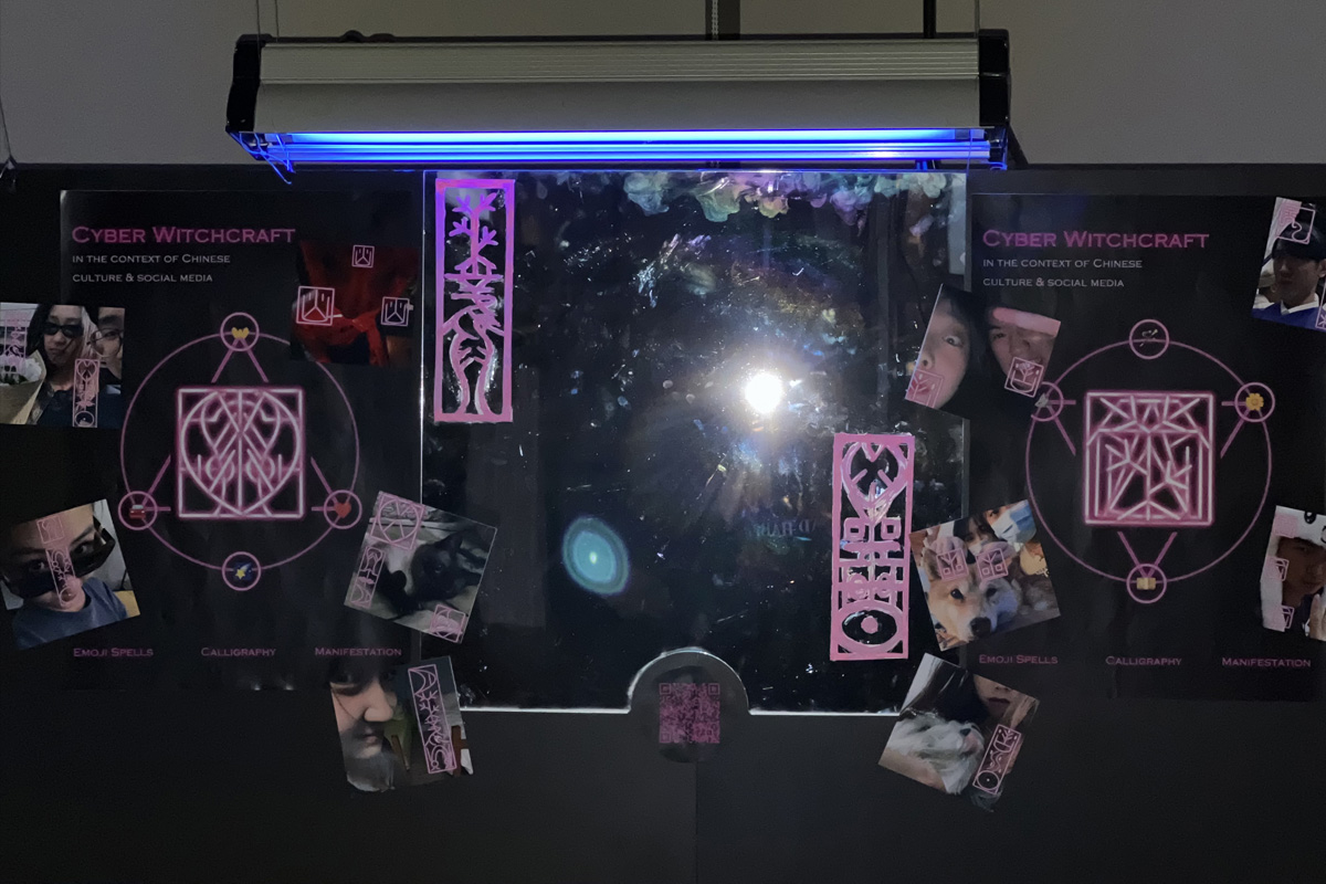 My project is about cyber-witchcraft in the context of Chinese culture and social media. As technology develops, witchcraft activities that take place in cyberspace become new trends for Mysticism lovers. As a social media addict, I personally love to retweet pictures that people claim to contain magical powers, such as rainbows as symbols of good luck, cute kitties that benefit your energy of the week, etc. In China, there are memes of people who are known as being lucky all over the internet and it’s believed that if you make interactions online using these memes you will also become lucky. Even Though it doesn't sound scientific it also doesn’t hurt to try. So I engaged in these types of activities like many others who think so, without noticing that this belongs to the category of cyber witchcraft. Cyber witchcraft participants believe that digital elements have similar power to natural elements that are used in spells and ceremonies, thus cyberspace became their new medium of spell-casting. One popular cyber spell-casting method on the Western internet is known as emoji spells, which use emojis to represent different elements needed for a spell. Based on the idea of inventing a way of allowing Mysticism lovers in China to participate in cyber witchcraft in a context of traditional cultural background, I started to relate emojis with ancient pictographic symbols, and oracle bone scripts. These symbols that originated more than three thousand years ago are known as the earliest form of the Chinese characters we use today and were used by our ancestors back then in witchcraft activities. By referring to the actual element emojis and bone scripts represent in common, I created a spell-casting platform that allows users to cast spells in ancient symbols by selecting emojis. Users are able to turn their selfies into charms which would be enhanced by sharing or posting on social media.